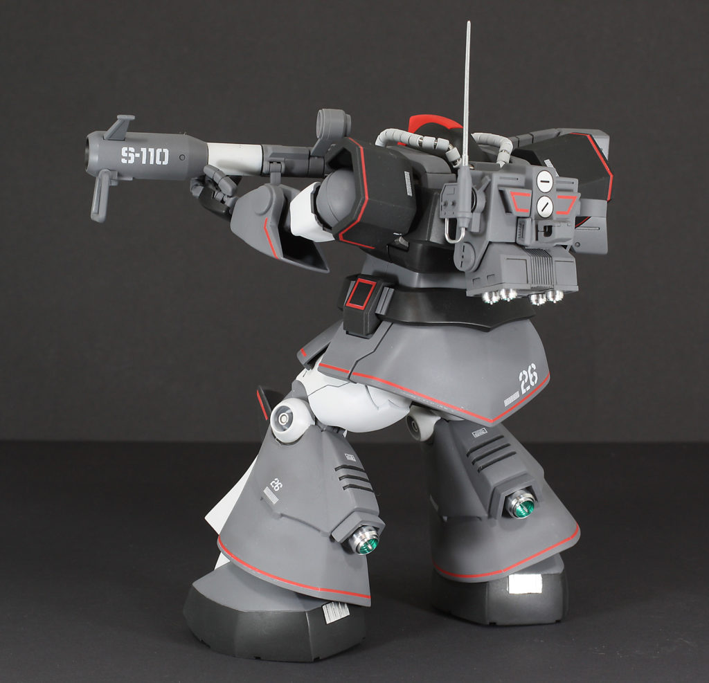 1/100プロトタイプドム(旧キット)とMG ドムのミキシングビルドです。旧キットは足が短く、ずんぐりしているので、MGドムのプロポーションを生かし、製作。関節は全てMGのものを、ジャイアントバズーカもMGのものを使用しています。