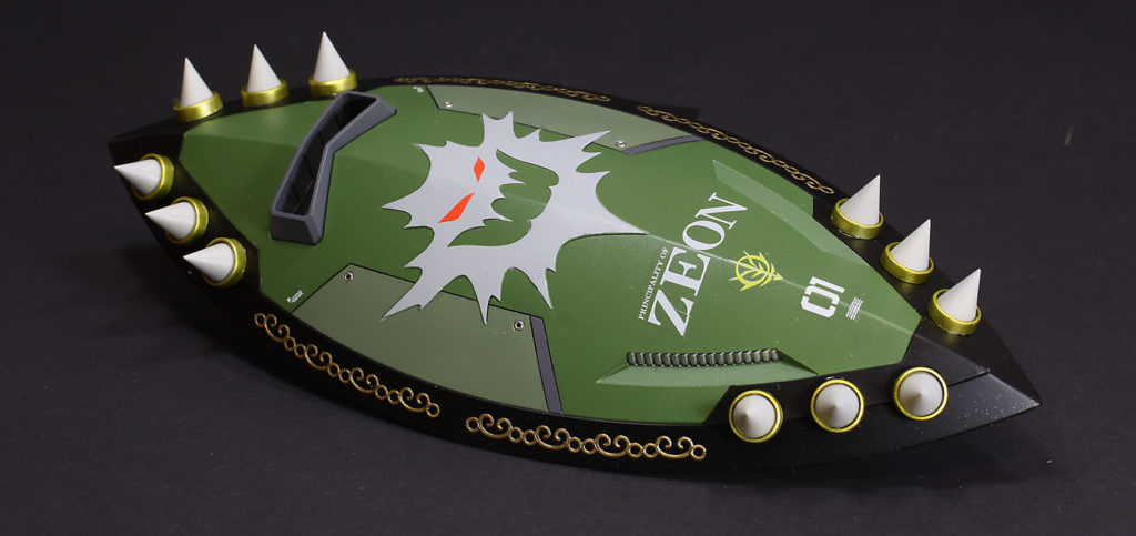 背中のシールドには、ドズルがビグザムで散る際に現れた悪魔の幻影をあしらいました。