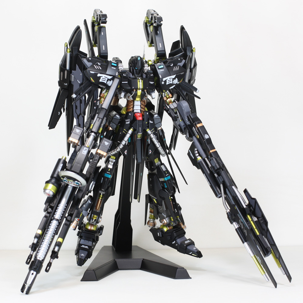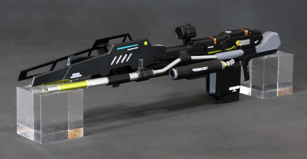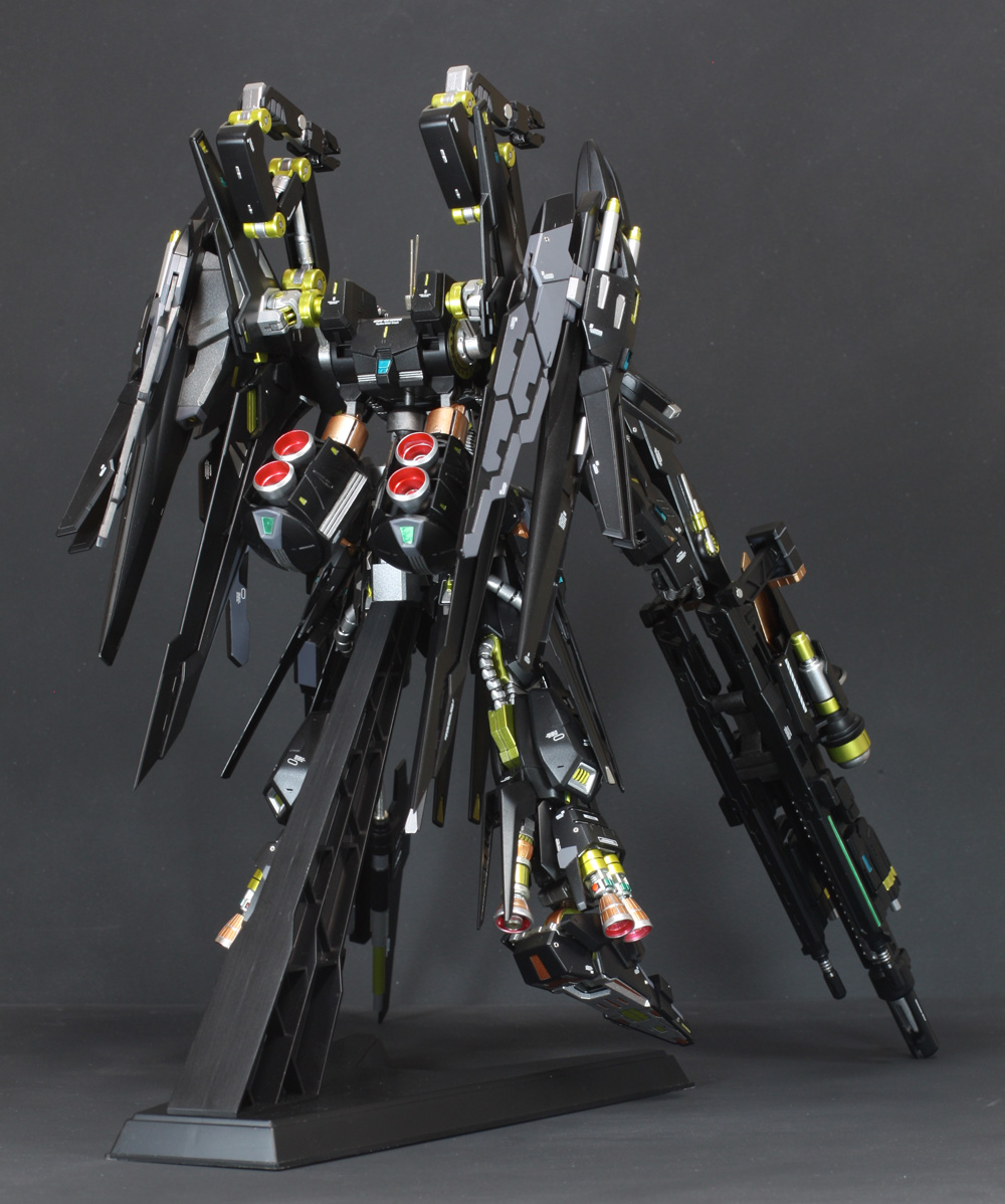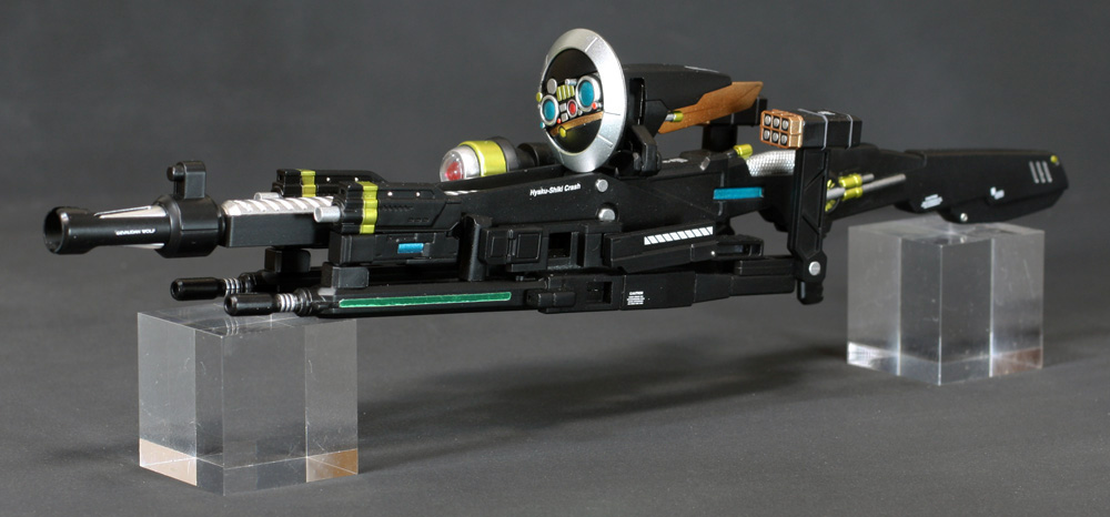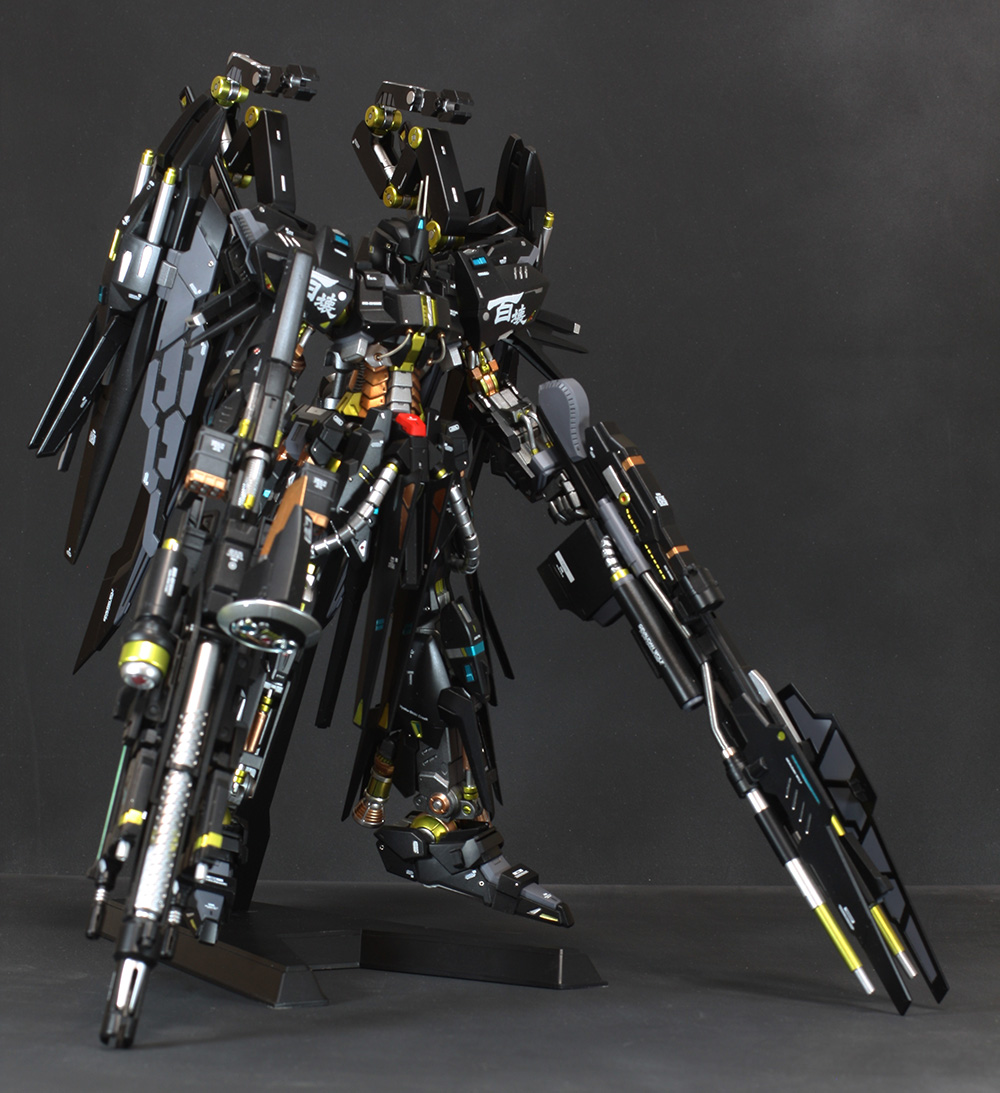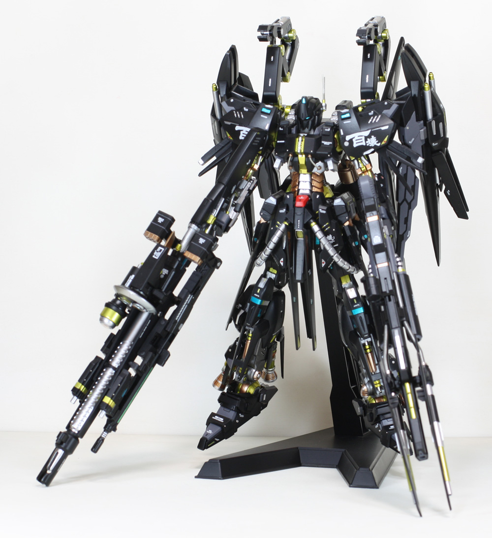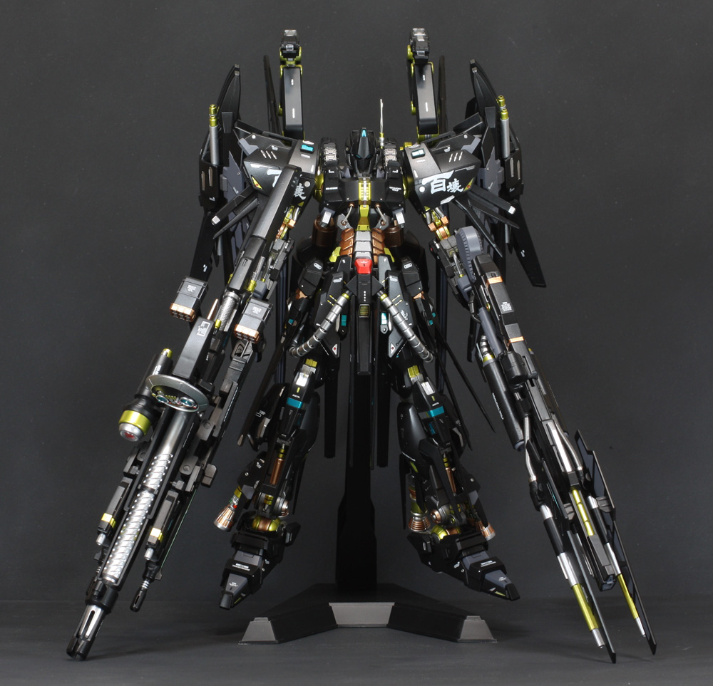肩にはコトブキヤの「ウェポンユニット42 フォールディングアーム」、ウイングの外側には「オ―ライザー」の翼、右手にはEx-Sガンダムのライフル、左手には既存のライフルにコトブキヤの「ウェポンユニット44 ヘヴィマシンガン」を追加しています。