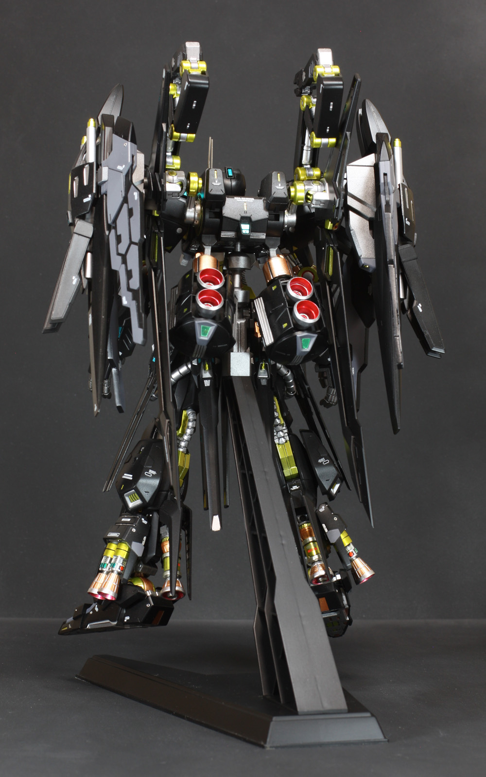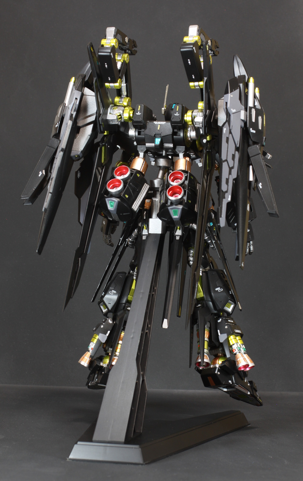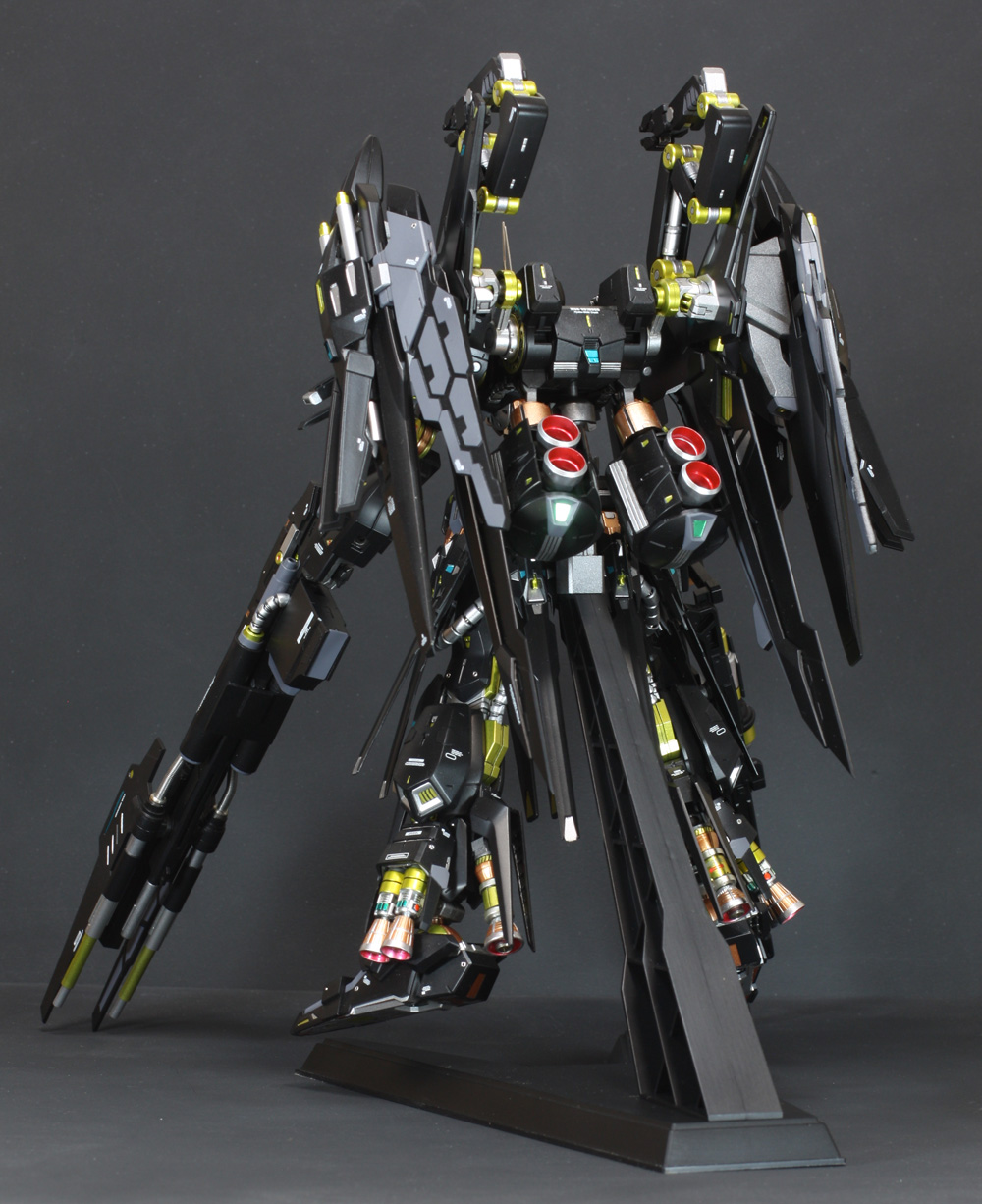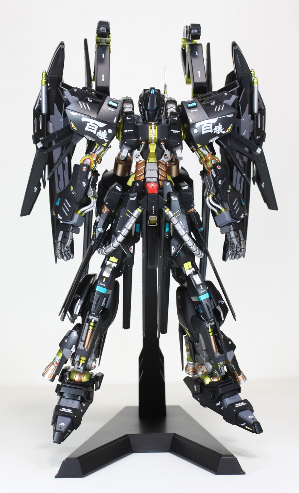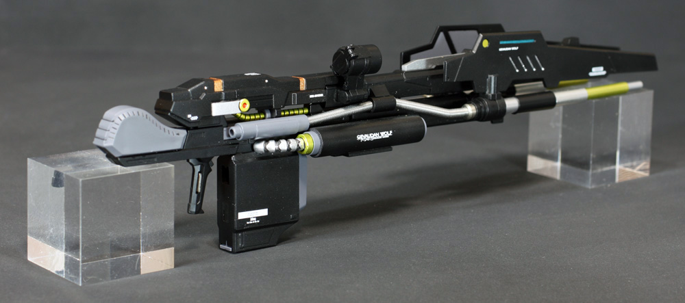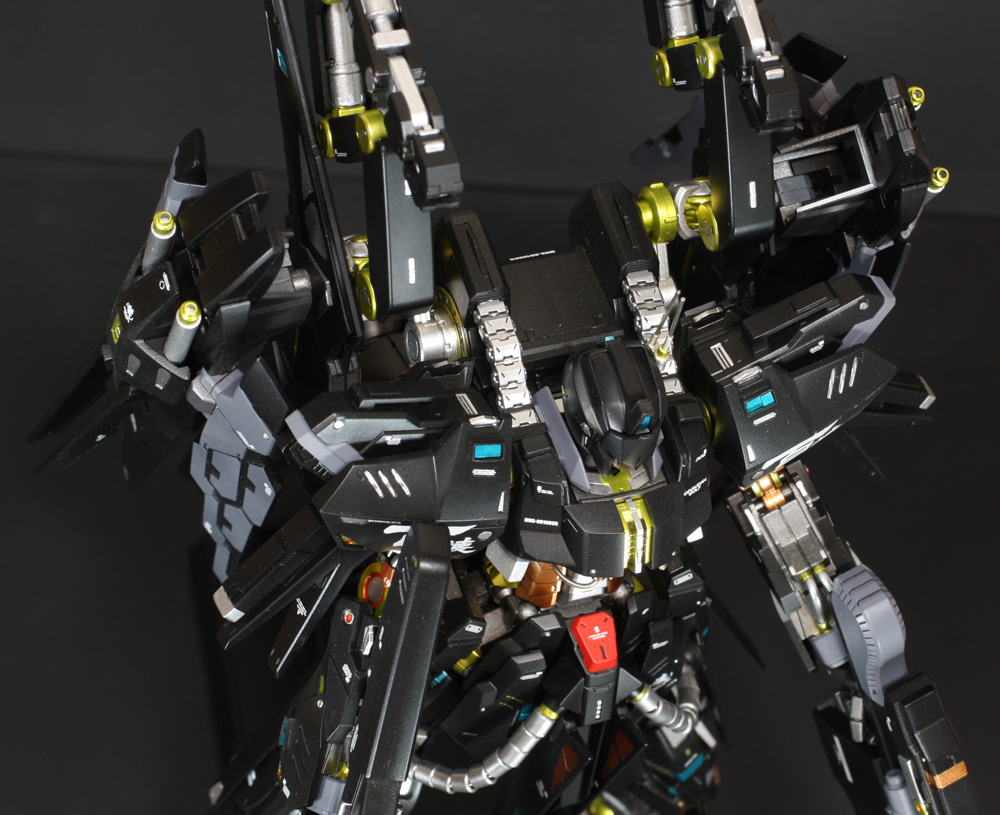 肩にはコトブキヤの「ウェポンユニット42 フォールディングアーム」、ウイングの外側には「オ―ライザー」の翼、右手にはEx-Sガンダムのライフル、左手には既存のライフルにコトブキヤの「ウェポンユニット44 ヘヴィマシンガン」を追加しています。